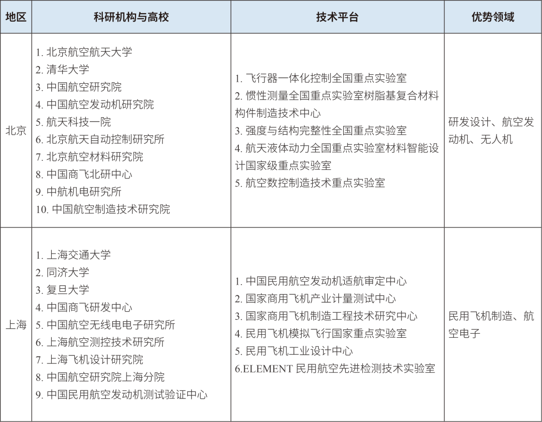 在研發(fā)設(shè)計(jì)和高端制造方面,上海依托經(jīng)濟(jì)優(yōu)勢(shì)和產(chǎn)業(yè)基礎(chǔ),以整機(jī)集成等應(yīng)用研發(fā)和商業(yè)化生產(chǎn)為主;北京依托科研機(jī)構(gòu)和高校,以關(guān)鍵零部件和無人機(jī)的基礎(chǔ)研究及高端生產(chǎn)為主,制造產(chǎn)值低于上海。上海作為我國(guó)民用航空產(chǎn)業(yè)創(chuàng)新策源地,是C919研發(fā)設(shè)計(jì)的核心基地,承擔(dān)了大部分總體設(shè)計(jì)和集成研發(fā)任務(wù),其中中國(guó)商飛上海飛機(jī)設(shè)計(jì)研究院作為國(guó)產(chǎn)大飛機(jī)研制核心力量,主導(dǎo)C919大型客機(jī)、ARJ21新支線飛機(jī)等標(biāo)志性機(jī)型的設(shè)計(jì)研發(fā),形成覆蓋全壽命周期的工業(yè)設(shè)計(jì)能力。北京作為我國(guó)航空研發(fā)設(shè)計(jì)的核心策源地,聚焦航空電子設(shè)備與系統(tǒng)、航空動(dòng)力、適航取證等關(guān)鍵領(lǐng)域,在飛行器氣動(dòng)設(shè)計(jì)、智能控制系統(tǒng)、航空發(fā)動(dòng)機(jī)等領(lǐng)域?qū)崿F(xiàn)多項(xiàng)核心技術(shù)突破,如中國(guó)航發(fā)集團(tuán)牽頭承擔(dān)“兩機(jī)”(航空發(fā)動(dòng)機(jī)和燃?xì)廨啓C(jī))等國(guó)家科技重大專項(xiàng),通過AES100民用渦軸發(fā)動(dòng)機(jī)等標(biāo)志性產(chǎn)品,實(shí)現(xiàn)從“跟跑”到“并跑”的跨越。