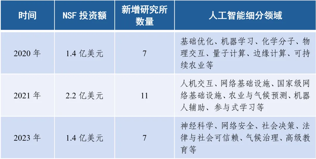 表1 美國政府近年投資的25家人工智能研究所總體情況